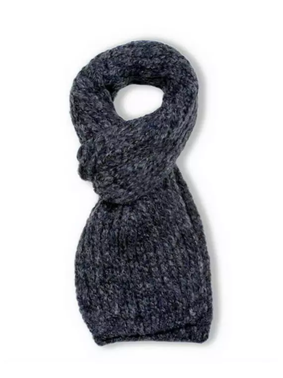 Шарф женский трикотажный одинарный, с заработанными краями. Шарф связан грубой вязкой, иммитирующей ручное вязание. Основное переплетение: фанг в сочетании с ажуром.