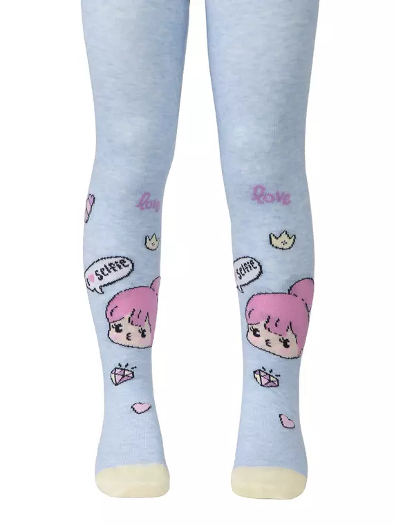 Хлопковые колготки TIP-TOP с рисунком "I Love Selfie" 514 светло-голубой