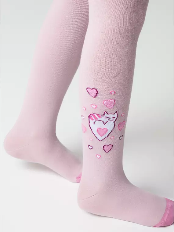 Колготки для девочек с сердечками и котенком TIP-TOP 679