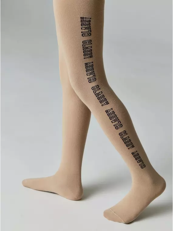 Хлопковые бежевые колготки с надписями TIP-TOP 681