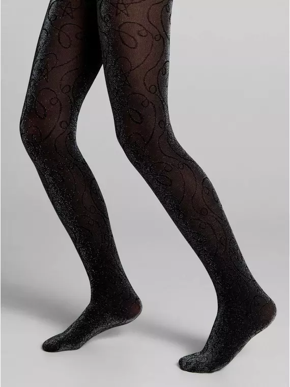 Колготки детские с люрексом и фантазийным рисунком shiny nero, 21С-109СП, 104-110, CONTE ELEGANT,  - 1