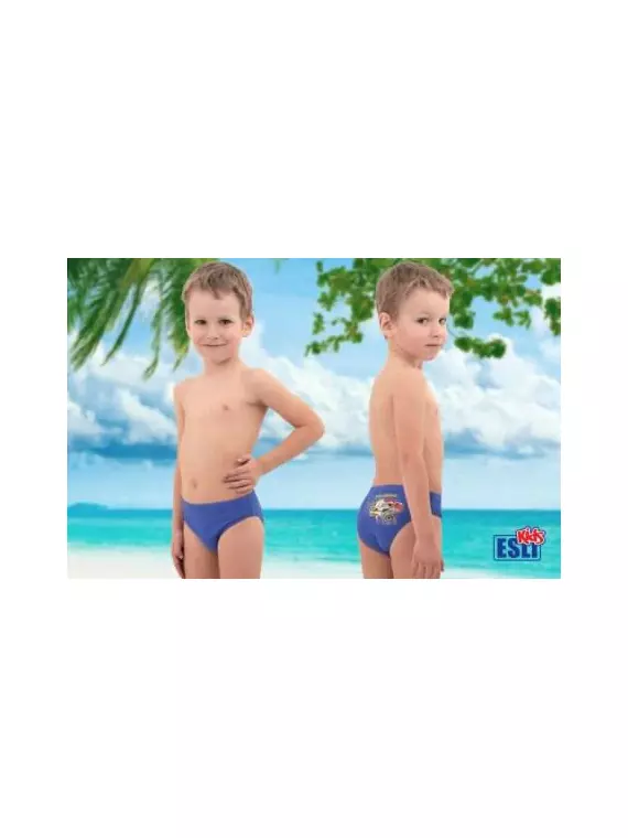 Плавки для мальчика SLIP из однотонного трикотажного полотна с двойной ластовицей и усиленной вставкой. На заднем полотнище плавок с правой стороны - принт. Срез талии обработан широкой, ножки- узкой резинкой вподгибку