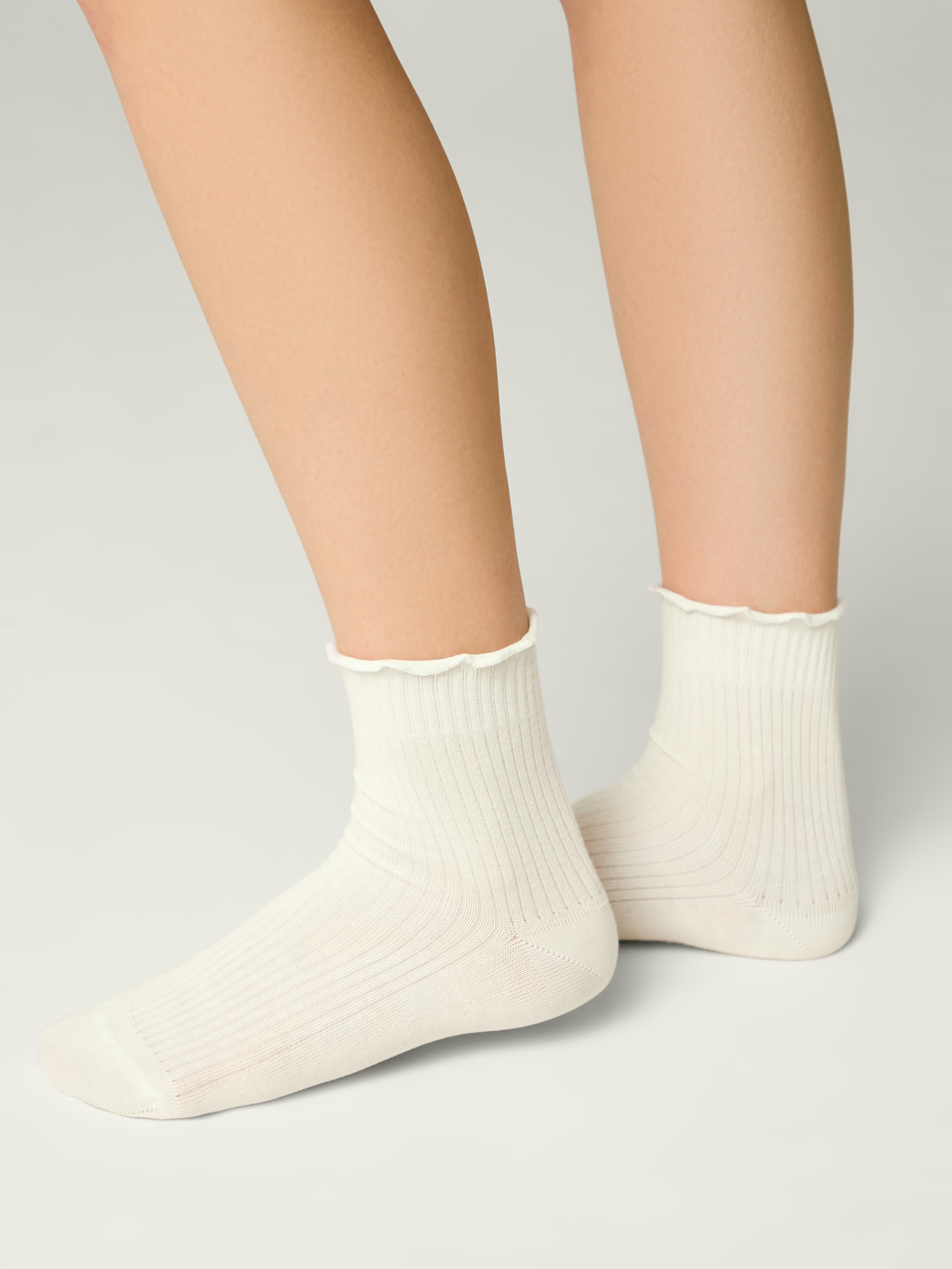 Носки детские TIP-TOP 1019 молочный — элегантное решение для повседневной носки, сочетающее нежный дизайн и инновационный комфорт. Эти носки изготовлены из премиального хлопкового полотна (66%) с оптимальным составом, обеспечивающим естественную воздухопроницаемость, мягкость и длительный срок службы. Эксклюзивный волнистый борт заменяет традиционную резинку, гарантируя идеальную посадку без сдавливания и раздражения нежной детской кожи.
