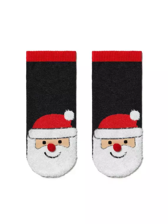 Детские короткие новогодние носки "санта-клаус" с пушистой нитью и помпоном 446 черный, 19С-80СП, 20-22, CONTE-KIDS,  - 1