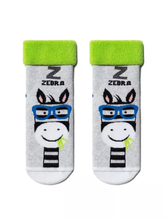 Махровые детские носки SOF-TIKI с отворотом 436 светло-серый-салатовый
