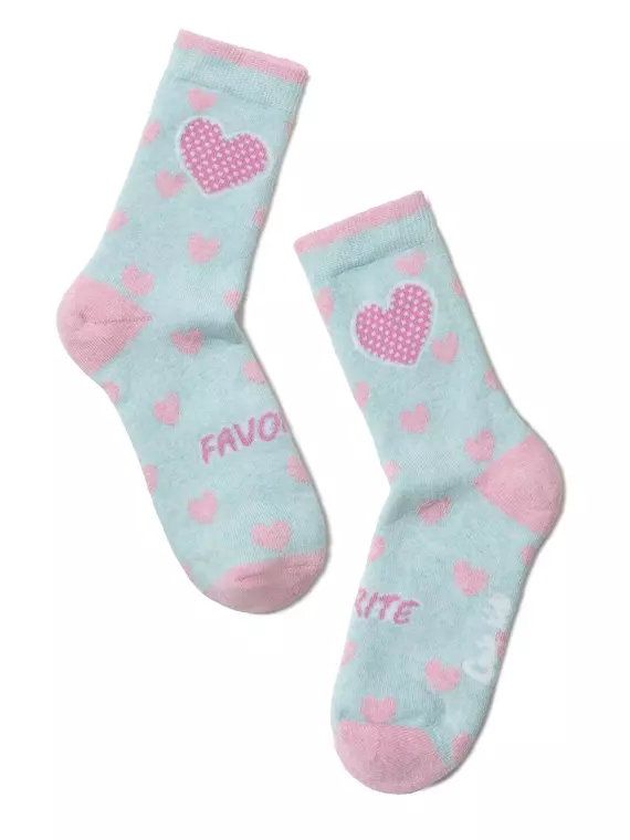 Махровые носки sof-tiki с рисунками "сердечки" 416 бледно-бирюзовый, 7С-46СП, 18, CONTE-KIDS,  - 1