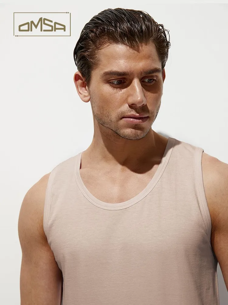 Мужская майка OMSA COTTON U1101 бежевого цвета — идеальный выбор для спорта и повседневной носки. Изготовлена из 100% высококачественного хлопка, обеспечивает отличную воздухопроницаемость, комфорт и свободу движений.