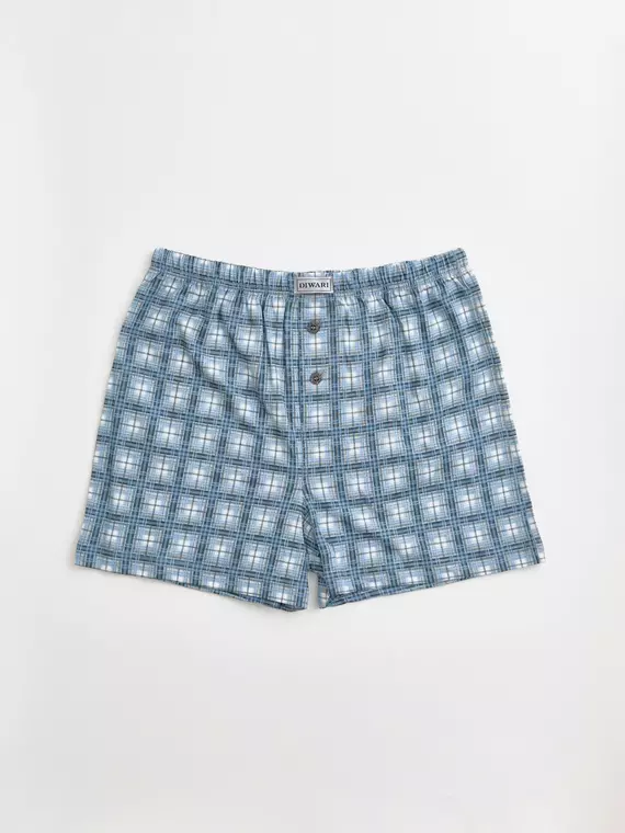 Трусы мужские boxer из набивного трикотажного полотна. гульфик застегивается на 2 петли и пугавицы с логотипом "diwari". пояс обработан эластичной тесьмой швом в подгибку.