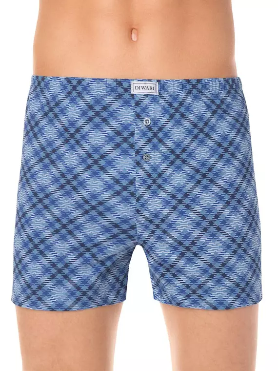 Трусы мужские BOXER из набивного трикотажного полотна. Гульфик застегивается на 2 петли и пуговицы с логотипом " DIWARI". Пояс обработан эластичной тесьмой швом в подгибку.