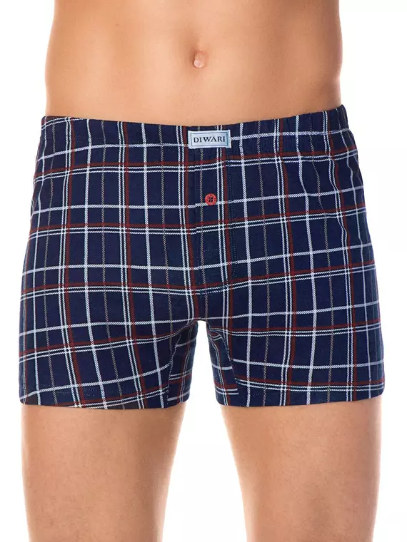 Трусы мужские boxer из трикотажного полотна в клетку. имитация гульфика с одной пуговицей. пояс обработан эластичной тесьмой швом в подгибку.