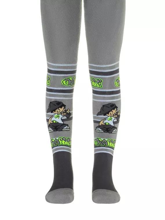Детские колготки sof-tiki (махровые внутри) с рисунками 391 серый