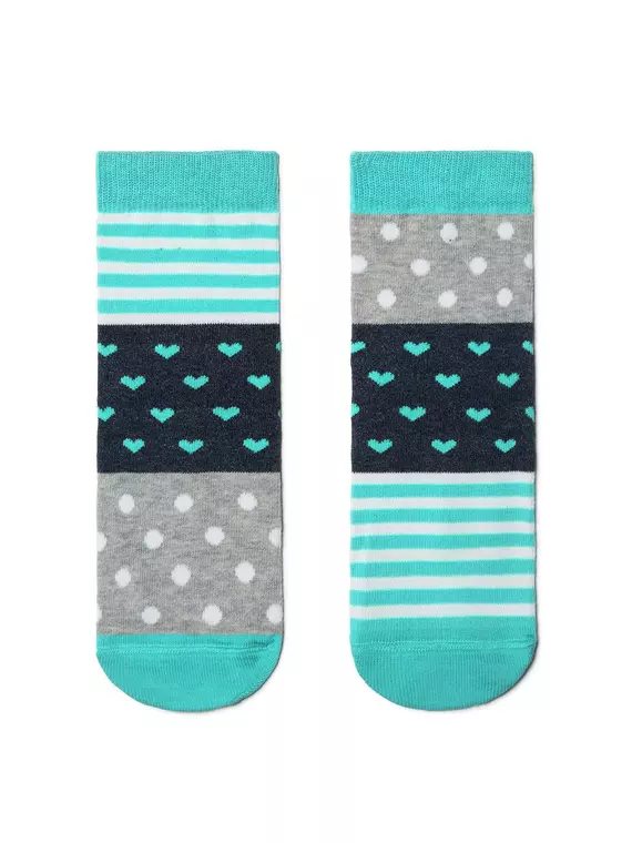 Хлопковые детские носки "Веселые ножки" 282 серый-бирюза