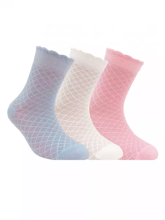 Детские носки из хлопка, тонкие, с волнистым бортом "пикот", с ажурными рисунками. Для девочек.