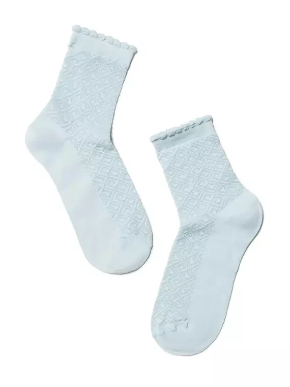 Детские носки из хлопка, тонкие, с волнистым бортом "пикот", с ажурными рисунками. Для девочек.