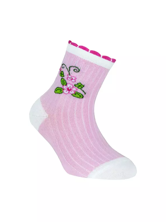 Детские носки из хлопка, с волнистым бортом "пикот", со стразами и люрексом, с рисунками. Для девочек.