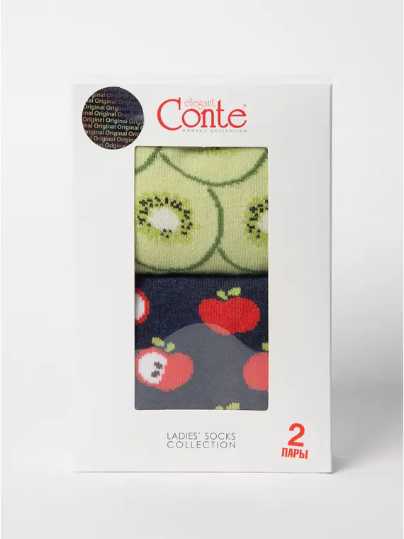 Хлопковые женские носки с рисунком «Фрукты» в фирменной коробке (2 пары) 716 салатовый-темно-синий