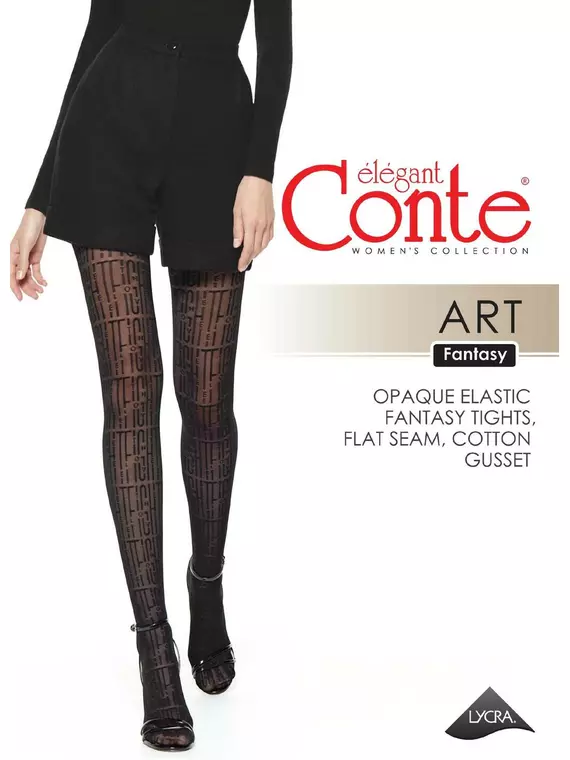 Колготки Art помогут создавать еще больше стильных и смелых образов: оригинальный рисунок из графических букв смотрится действительно индивидуально.