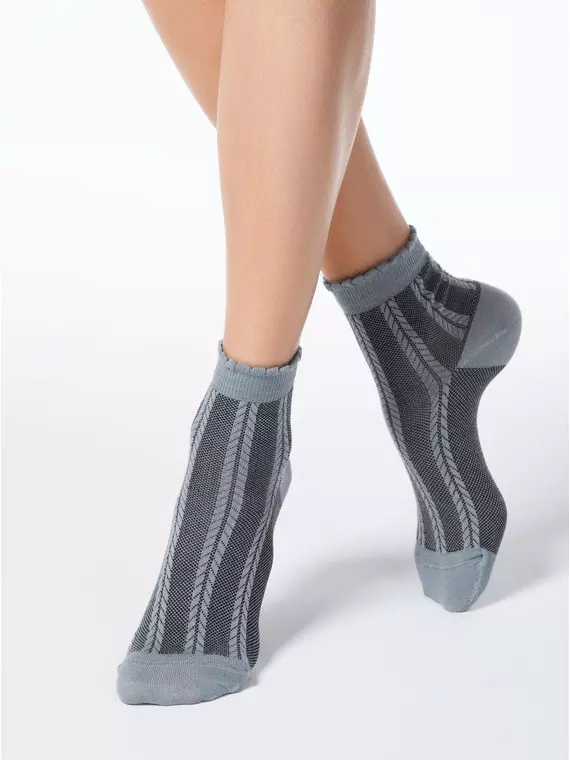 Женские носки из хлопка, с резинкой "пикот", с рельефными жаккарджовыми рисунками.