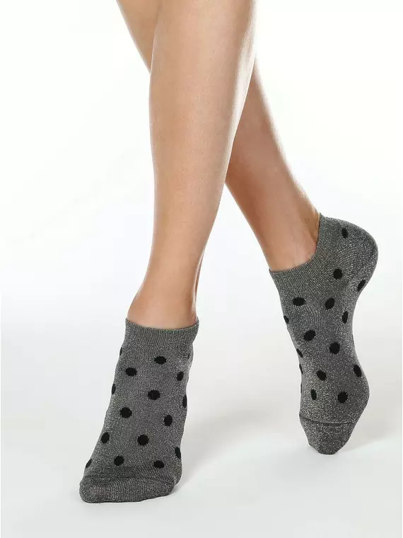Укороченные носки в горошек с сияющим люрексом созданы для девушек, которые любят выглядеть оригинально и с удовольствием подчеркивают свою индивидуальность.