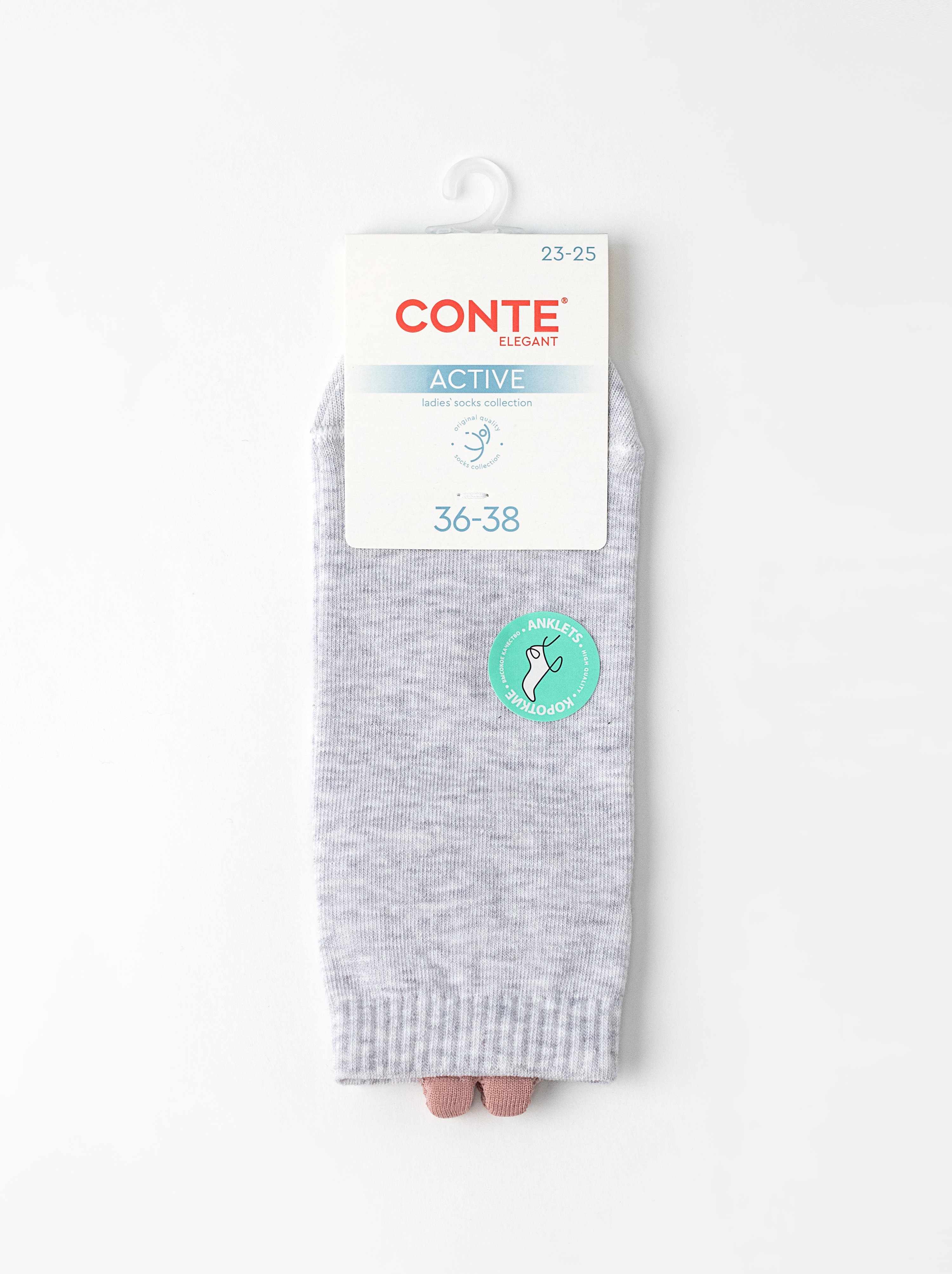 Состав: 70% хлопок, 28% полиамид, 2% эластан. Цвет: светло-серый. Размеры: 36-39, 38-41. Носки CONTE ACTIVE 221 — ваш выбор для комфорта, стиля и активного настроения каждый день.