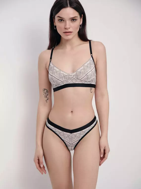 • без каркасов • плавная V-образная линия декольте • мягкие чашки на подкладке • тонкие регулируемые бретели из эластичной тесьмы • широкая эластичная лента под грудью • роскошное фактурное кружево • сохранение формы и цвета при соблюдении рекомендаций по уходу • создано, чтобы очаровывать с первых секунд • лимитированная