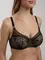 Загадочный и соблазнительный образ серии Nocturne создан благодаря сочетанию материалов с разной фактурой – сетки в мелкий горошек и кружева с крупным рисунком и прямым краем. Cложный крой и эффектные цвета усиливают впечатление. Акцентное украшение в виде буквы С на ластовице и фурнитура бретелей из золотистого металла.