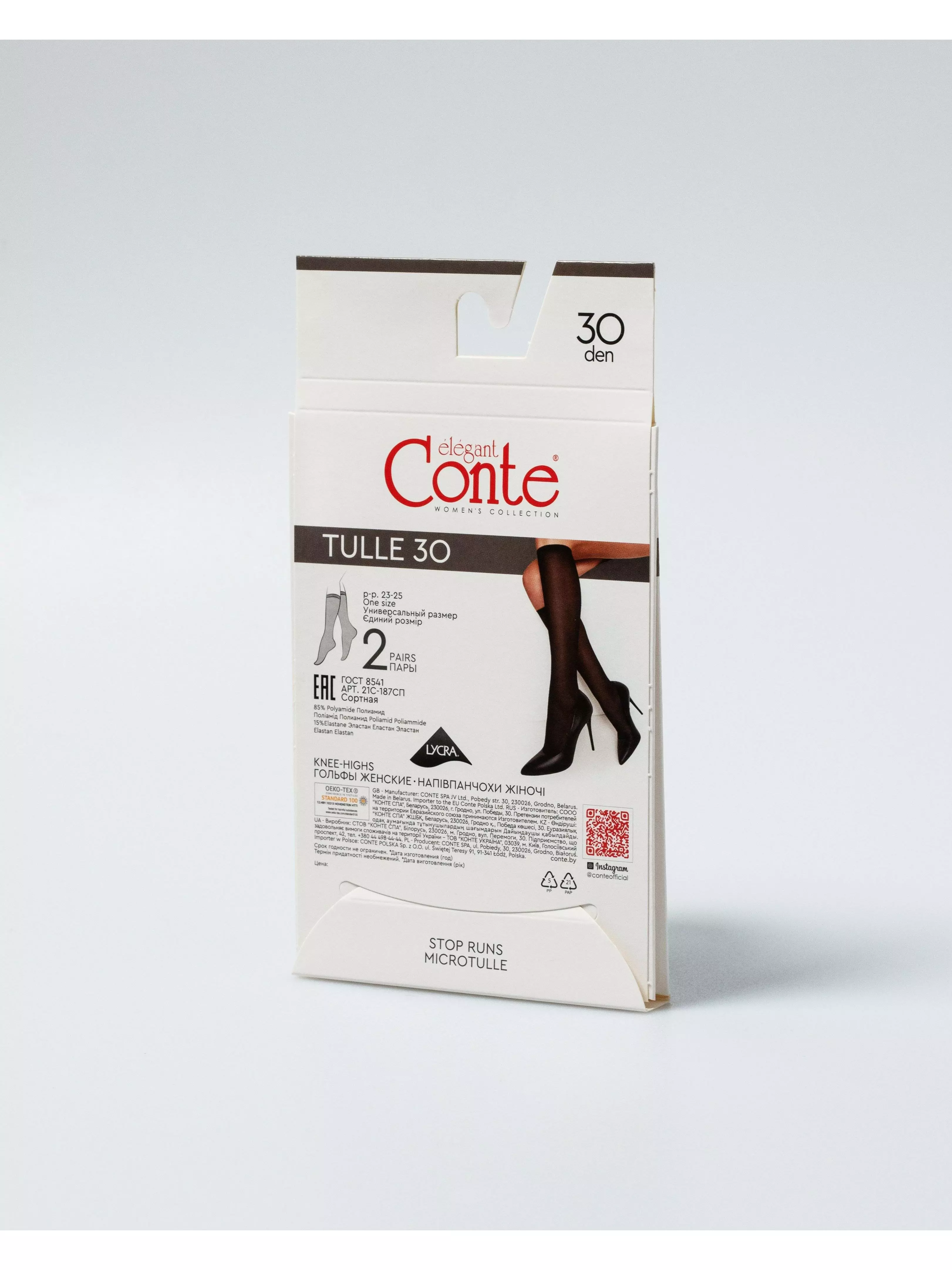 Состав: 85% полиамид, 15% эластан. Плотность: 30 DEN. Цвет: bronz (бронзовый). Упаковка: 2 пары. Размер: универсальный (подходит для 36-39). Гольфы CONTE TULLE — ваш выбор для комфорта, стиля и долговечности каждый день.