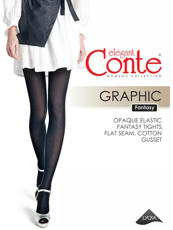 Колготки с замысловатым геометрическим рисунком GRAPHIC идеально подойдут как для лаконичных повседневных образов, так и для вечерних выходов в свет.