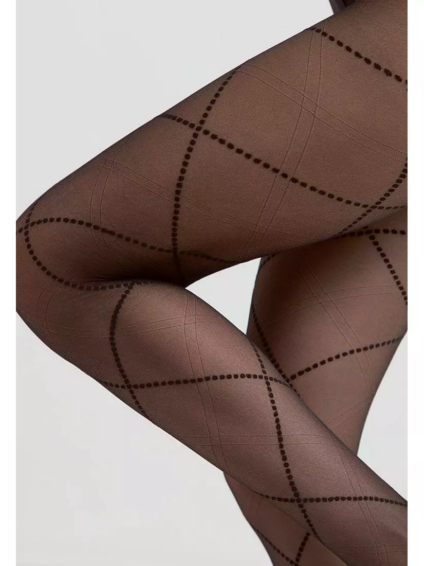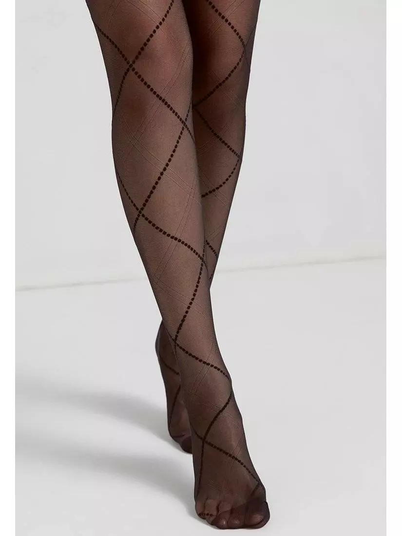 · 20 den· тонкие и эластичные· крупный геометрический рисунок «шнуровка»· удобный пояс· однородные по всей длине· плоский шов· хлопковая ластовица· укрепленный мысок.