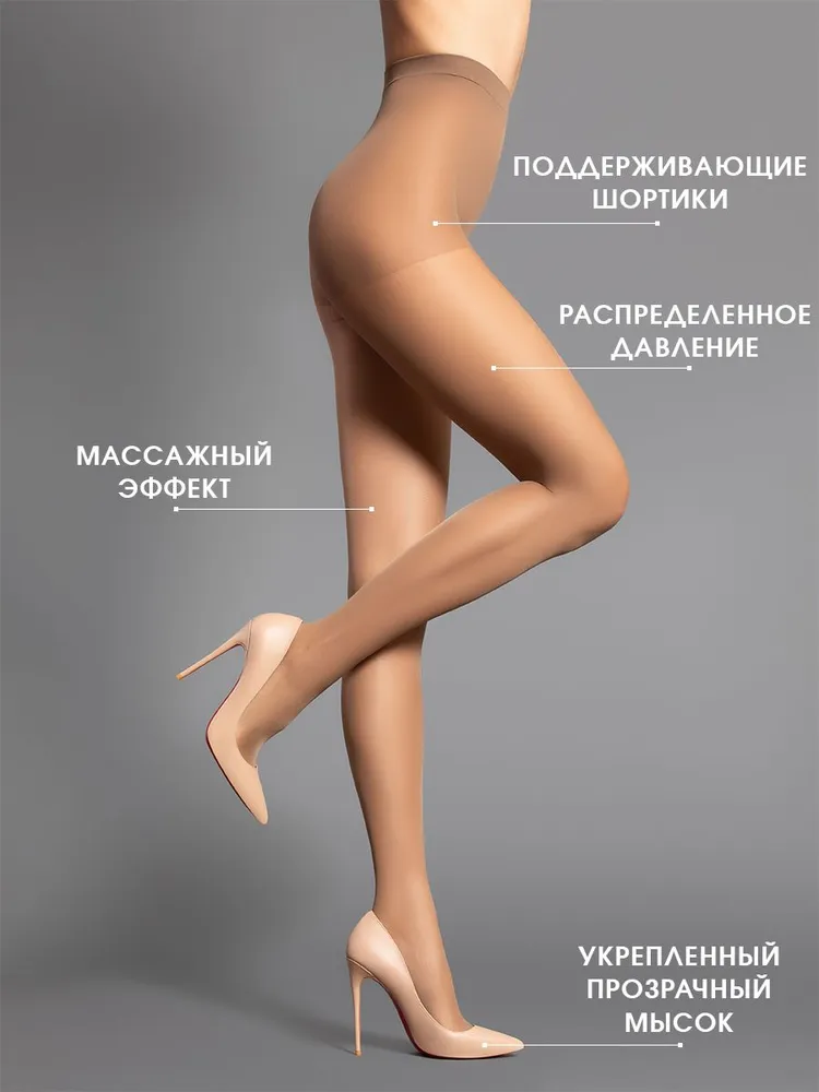 Колготки Incanto Active Body 20 den Daino — утягивающие колготки с поддерживающими шортиками и технологией распределенного давления. Идеальная замена корректирующему белью. Модель эффективно утягивает живот и бедра, создавая стройный силуэт. Усиленная компрессия в нижней части снимает усталость с ног и стимулирует кровообращение.