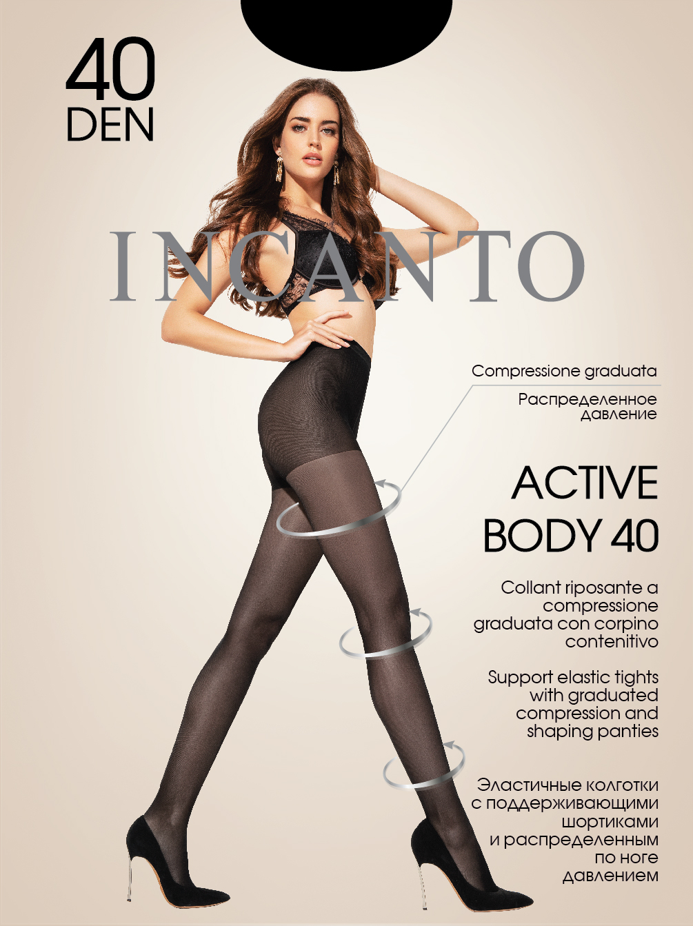Колготки Incanto Active Body 40 den Melon — утягивающие колготки с поддерживающими шортиками и технологией распределенного давления. Более плотная модель для эффективной коррекции фигуры. Усиленная компрессия утягивает живот и бедра, создавая стройный силуэт, при этом снимая усталость с ног.