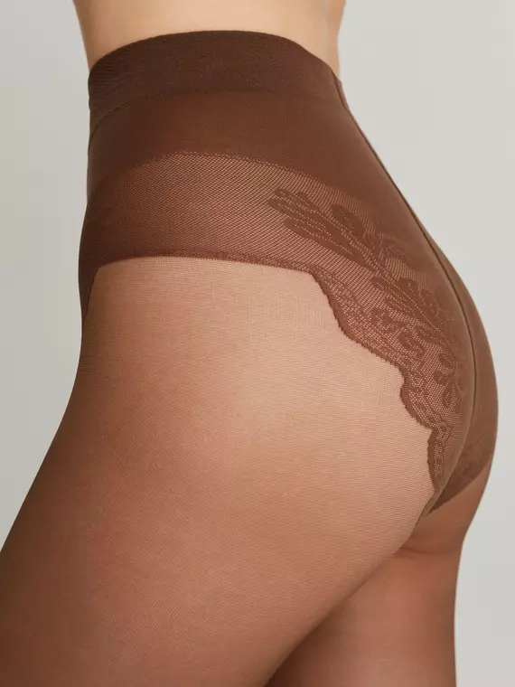 Тонкие эластичные шелковистые колготки BIKINI 20 ден с ажурными трусиками в верхней части, плоский шов, хлопковая ластовица.
