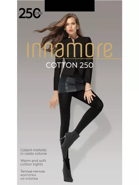 Суперплотные колготки Innamore Cotton 250 den из хлопка - максимальная защита от холода в зимний период. Очень теплые и непрозрачные, обеспечивают комфорт даже в самые морозные дни.