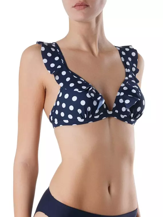 Лиф с жесткими формованными чашечками SOUTH BEACH станет идеальным пляжным спутником. Вы оцените легкие воланы, трендовый рисунок "в горошек", отличную поддержку для груди и удобные регулирующиеся бретели.