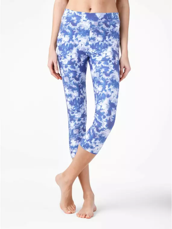 Бриджи FIOLA в сине-белом цветочном исполнении — распродажа 50%! Эластичный материал и продуманный крой для комфорта.