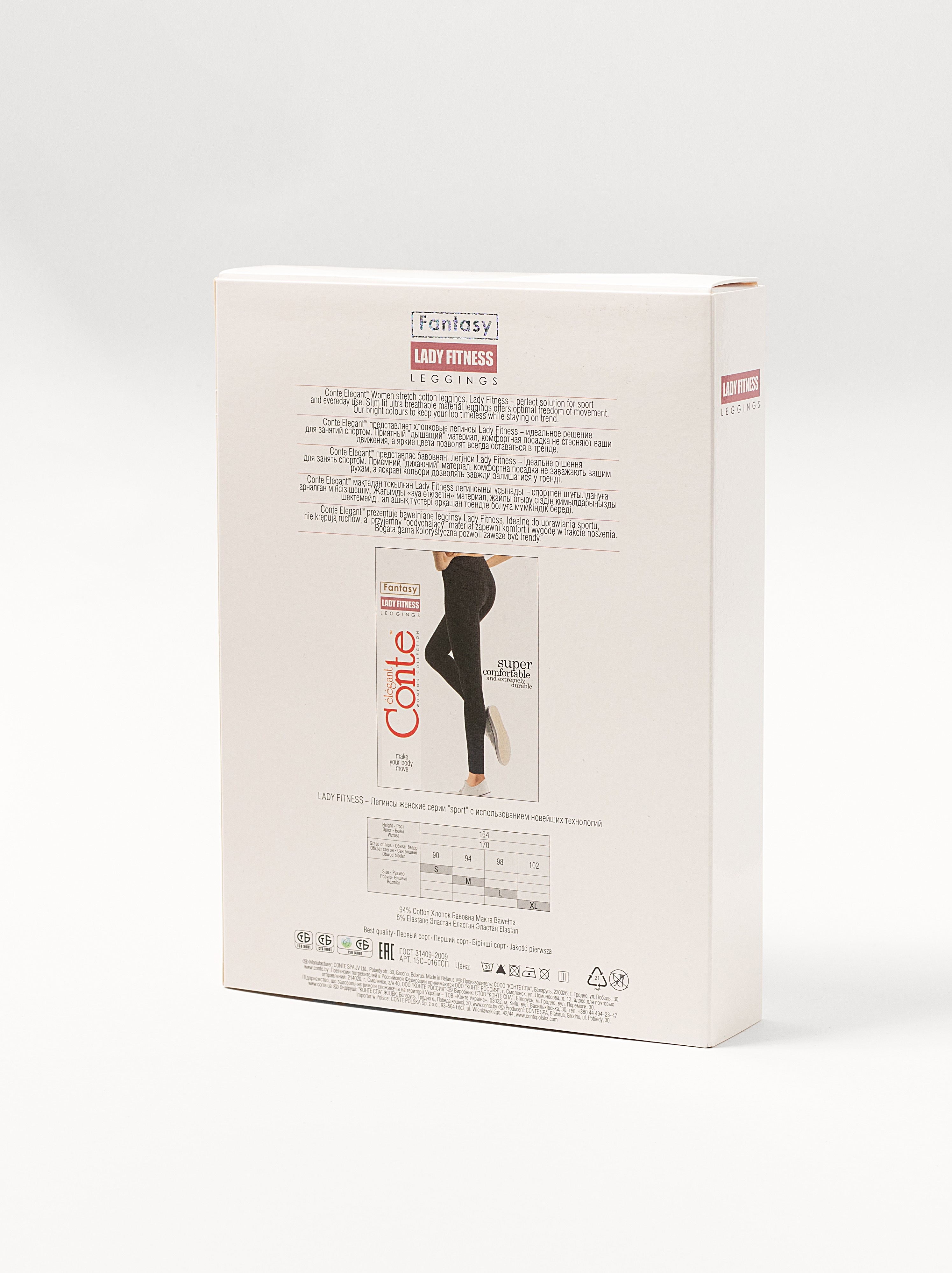 Легинсы женские облегающие. Без боковых швов и декора. Верхний срез изделия обработан широкой эластичной тесьмой швом вподгибку.