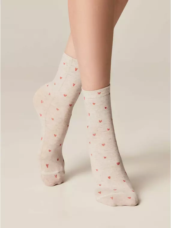 Носки женские с принтом из пряжи с хлопком и льном FANTASY 561 бежевый