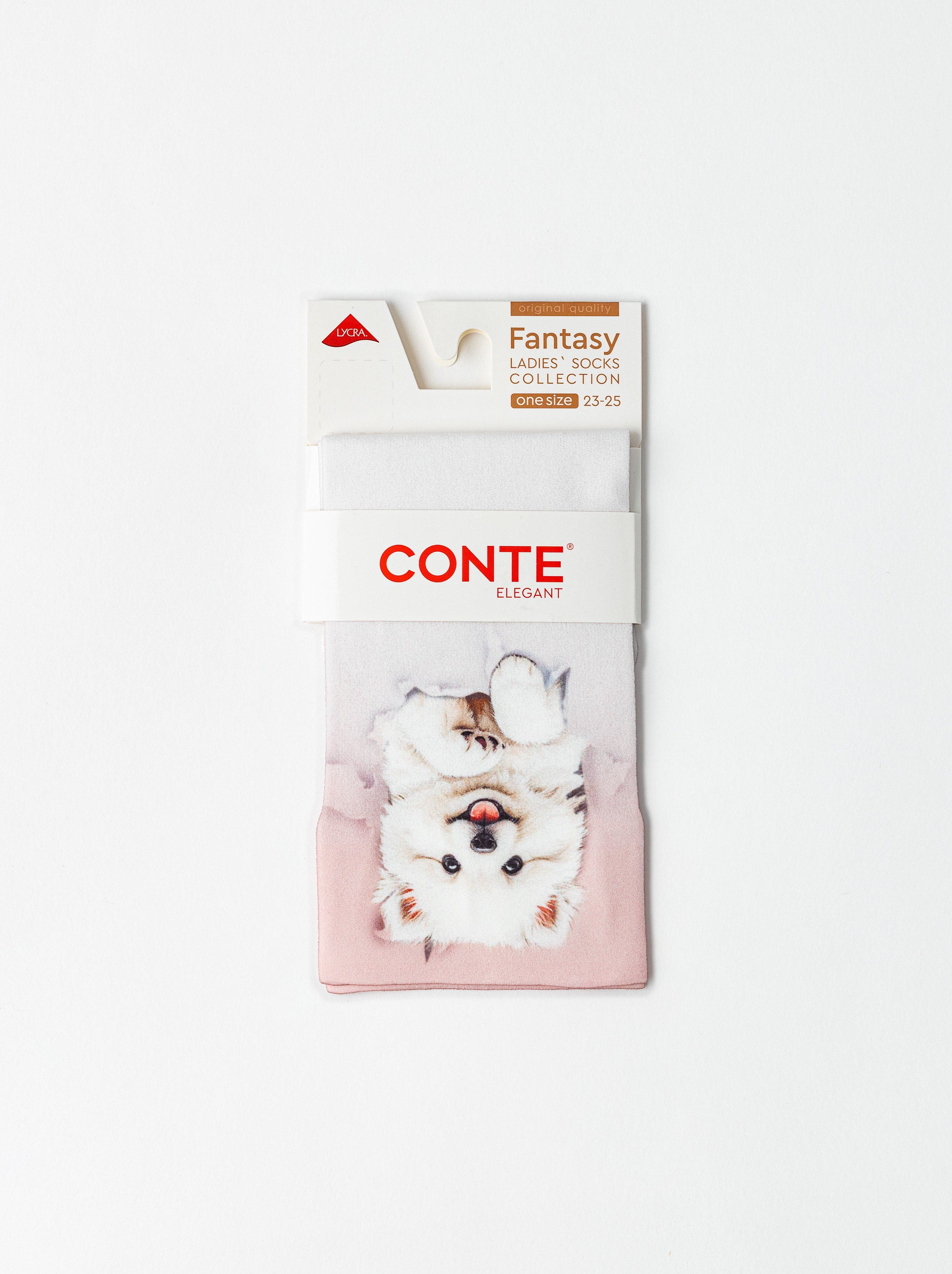 Носки женские CONTE FANTASY 931 mix — стильный акцент для создания индивидуального и яркого образа. Эти плотные носки 70 DEN изготовлены из инновационного волокна с микрофиброй, которое обеспечивает exceptional мягкость и долговечность. Уникальный рисунок с забавной собачкой нанесен с помощью технологии термотрансферной печати, создавая эффект 3D и гарантируя устойчивость изображения даже после многочисленных стирок.