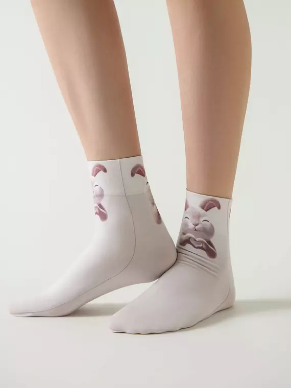 Носки женские CONTE FANTASY 932 mix — очаровательный аксессуар для создания нежного и романтичного образа. Эти плотные носки 70 DEN изготовлены из волокна микрофибры, которое обеспечивает мягкость и комфорт в течение всего дня. Уникальный рисунок с милым зайчиком, держащим сердечко, нанесен с помощью технологии термотрансферной печати, создавая эффект 3D и гарантируя устойчивость изображения даже после многочисленных стирок.