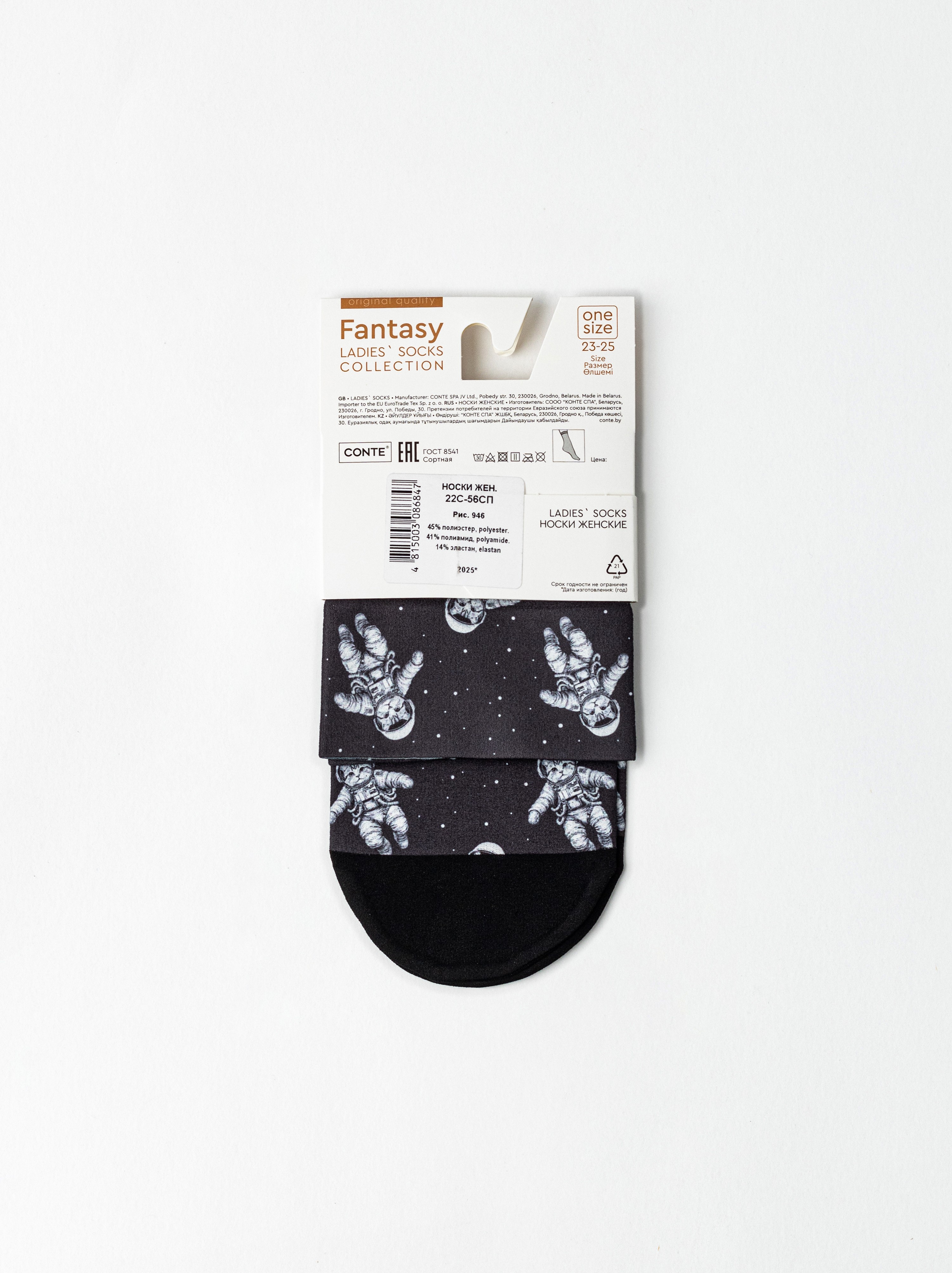 Носки женские CONTE FANTASY 946 mix — фантазийный и оригинальный аксессуар для создания неповторимого космического образа. Эти плотные носки 70 DEN изготовлены из волокна с микрофиброй, которое обеспечивает мягкость, эластичность и комфорт в течение всего дня. Уникальный рисунок с котом-космонавтом в скафандре, парящим в космосе, нанесен с помощью передовой технологии термотрансферной печати, создавая эффект объемного 3D-изображения и гарантируя устойчивость фантазийного принта даже после многочисленных стирок.
