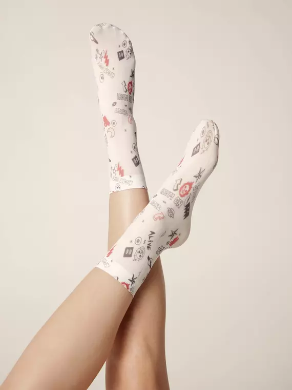 Плотные эластичные носки Fantasy с креативными рисунками, выполненным с помощью термопечати, добавят в образ индивидуальности и гарантированно поднимут настроение. Будьте готовы к ярким модным экспериментам!