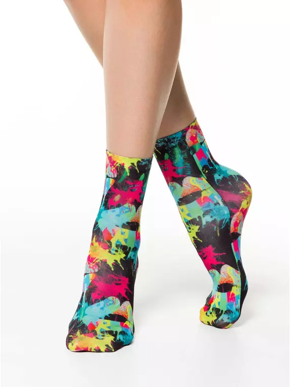 Плотные эластичные носки с яркими принтами смотрятся так стильно и оригинально, что вам не захочется прятать их под одеждой. Смело носите трендовые носочки FANTASY и с удовольствием подчеркивайте свою индивидуальность. LYCRA®: носки, в составе которых есть волокно LYCRA®, превосходно растягиваются во всех направлениях, восстанавливают свою первоначальную форму раз за разом, медленно изнашиваются, не съезжают с ноги во время носки и не оставляют красных следов от резинки.