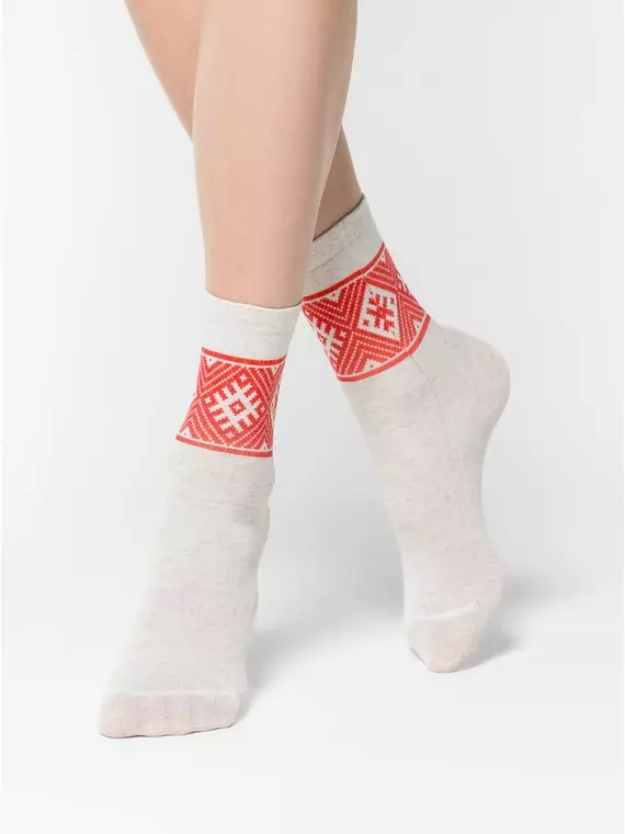 Носки женские с принтом FANTASY из смесовой пряжи с хлопком и льном 274 бежевый