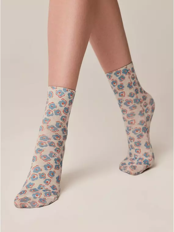 Носки женские с принтом из смесовой пряжи с хлопком и льном fantasy 403 бежевый, 20С-107СП, 36-39 (23-25), ,  - 1