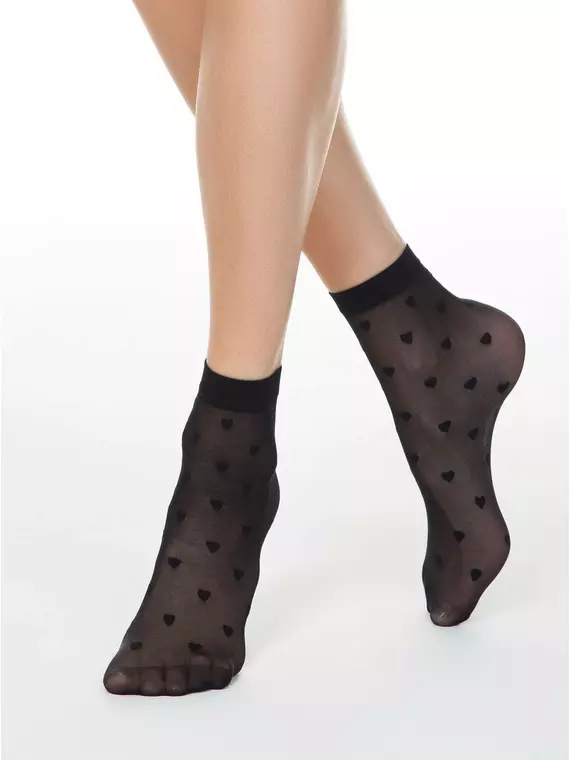 Тонкие женские носки FANTASY с рисунком "сердечки" Conte 19С-111СП nero