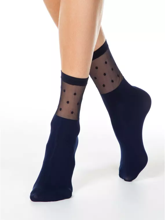 Удлиненные носки с прозрачным верхом в горошек созданы для девушек, которые любят выглядеть оригинально и с удовольствием подчеркивают свою индивидуальность.