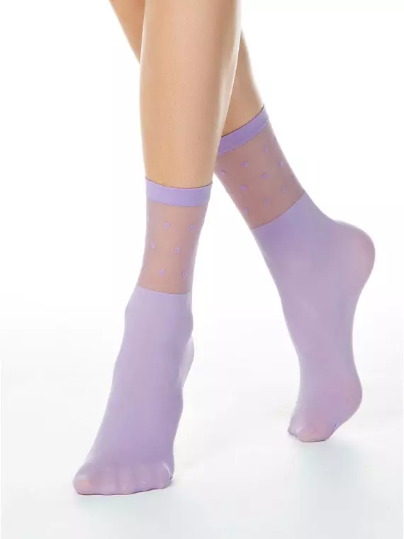 Удлиненные женские носки с прозрачным верхом в горошек FANTASY violet