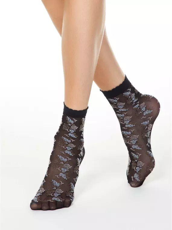 Женские тонкие носки FANTASY с имитацией цветочной вышивки brown-nero