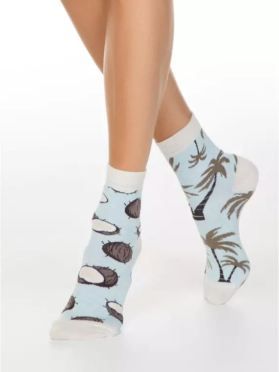 Хлопковые женские носки HAPPY с рисунками "Кокосы и пальмы" 165 бледно-бирюзовый