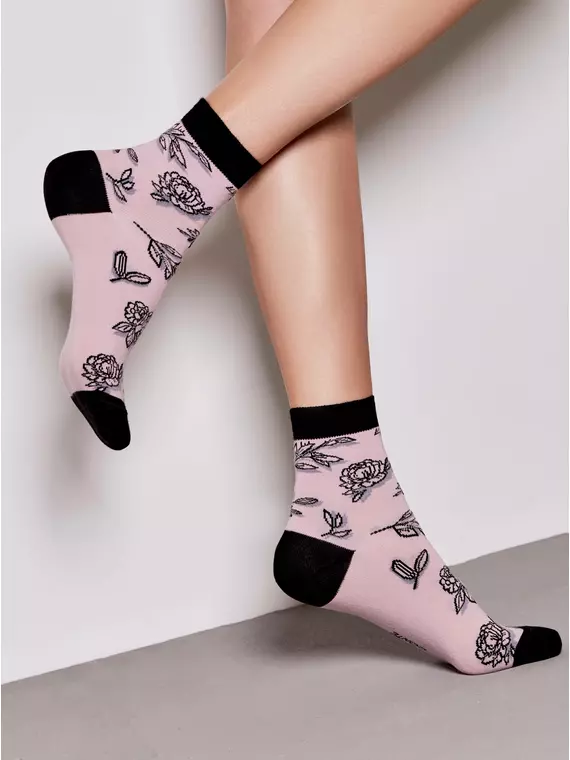 Хлопковые женские носки с рисунками «Flowers with shadow» 435 пепельно-розовый